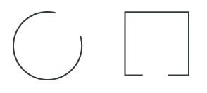 Das Gesetz der Geschlossenheit beschreibt die Organisation von optischen Reizen zu visuell wahrgenommenen Einheiten. Wie die Grafik zeigt, nehmen wir geschlossene Formen als eigenständige Objekte wahr. Dieser Eindruck kann durch eine tatsächliche Geschlossenheit, aber auch nur durch die Andeutung derselben provoziert werden. Rezeptiv neigen wir dazu, Lücken aufzufüllen und unvollständige Formen zu komplettieren.