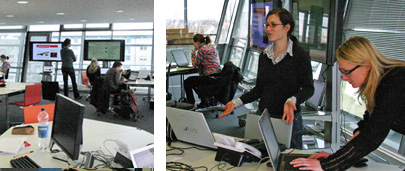 - Gruppenarbeitsräume mit Präsentationsmöglichkeiten wie z.B. Beamer oder Whiteboards, in denen interaktives, kollaboratives Arbeiten möglich ist.