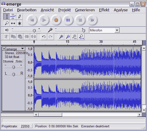 Benutzeroberfläche eines Audioeditors (Beispiel Audacity)