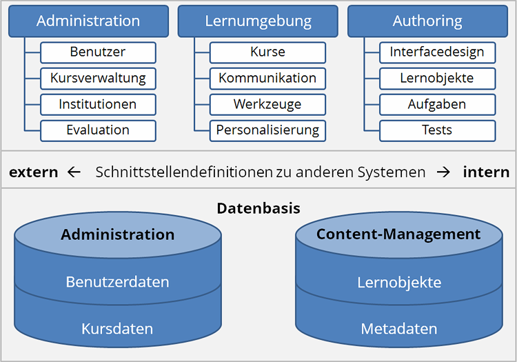 Das nachstehende Diagramm illustriert idealtypisch die Architektur eines LMS: