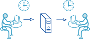 Synchrone Kommunikationsformen ermöglichen einen ortsunabhängigen und direkten Austausch zwischen verschiedenen Personen oder Personengruppen. Allerdings ist eine permanente Verbindung zum Internet erforderlich.
