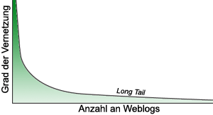 Die Blogosphäre besteht auf der einen Seite aus einigen Weblogs, die sehr stark verlinkt, gelesen und kommentiert werden. Dazu zählen vor allem die sogenannten Watchblogs, die sich meist kritisch mit einem oder mehreren bestimmten Medien auseinandersetzen (z. B. das BILDblog oder das GoogleWatchBlog). Auf der anderen Seite existiert eine sehr große Menge an kleineren, weniger häufig frequentierten Weblogs meist privater Personen - der sogenannte Long Tail der Blogosphäre.